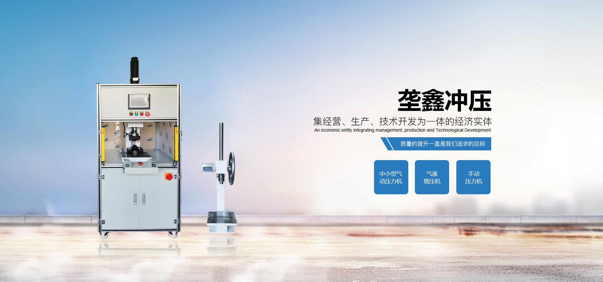煙臺(tái)壟鑫沖壓設(shè)備有限公司是集經(jīng)營(yíng)、生產(chǎn)、技術(shù)開(kāi)發(fā)為一體的經(jīng)濟(jì)實(shí)體,專業(yè)致力于中小型壓力機(jī)、非標(biāo)壓力機(jī)的設(shè)計(jì)開(kāi)發(fā)和制造。在引進(jìn)德國(guó)、日本等國(guó)家先進(jìn)的鉚壓控制技術(shù)及機(jī)器設(shè)計(jì)理念的基礎(chǔ)上,結(jié)合相關(guān)行業(yè)的實(shí)際需要,開(kāi)發(fā)出各種臺(tái)式、落地式氣動(dòng)壓力機(jī)、手動(dòng)壓力機(jī)、氣液增壓機(jī)、氣液增力缸、旋鉚機(jī)、無(wú)鉚釘鉚接機(jī)等鉚接設(shè)備。產(chǎn)品應(yīng)用領(lǐng)域廣泛,適用于汽車零件、電子、電器、家電、包裝、五金、等行業(yè)。公司視質(zhì)量為生命,并一貫遵循對(duì)每一臺(tái)產(chǎn)品負(fù)責(zé),對(duì)每一位用戶負(fù)責(zé),真誠(chéng)為您服務(wù)。 自公司成立以來(lái),秉承“誠(chéng)信,創(chuàng)新,專業(yè)”的經(jīng)營(yíng)理念,以優(yōu)質(zhì)的產(chǎn)品,完善的售后服務(wù),樹(shù)立良好的品牌形象,服務(wù)于廣大新老顧客。我們竭誠(chéng)于各位同仁攜手并進(jìn),共謀發(fā)展。